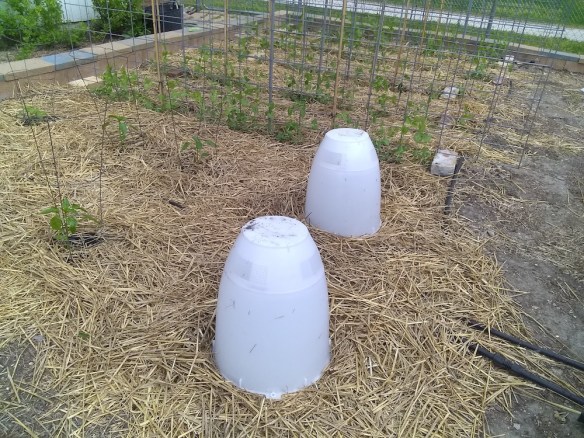 Last year I tried an experiment. Since I only grow four eggplant every year, I went out and purchased some hard plastic domed frost guards. Eggplant are notoriously cold sensitive, so why not? In addition, I thought they might act as a physical barrier to hungry flea beetles. I figured if I found any beetles under the dome, I would shoo them off and quickly replace it since flea beetles jump when startled. In practice, I never needed to do this as the domes worked quite well. After a week I checked and the transplants were hole-free. To test my experiment, I uncovered one of my eggplants. Three days later, when I went out to compare it to the still-covered plants, I found that the unprotected plant was COVERED with flea beetles and feeding holes. The domes worked!